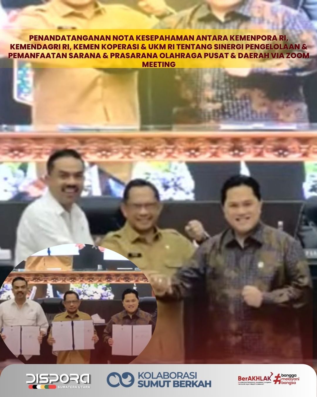 Penandatanganan Nota Kesepahaman Antara Kemenpora RI, Kemendagri RI, Kemen Koperasi & UKM RI tentang Sinergi Pengelolaan & Pemanfaatan Sarana & Prasarana Olahraga Pusat & Daerah Via Zoom Meeting