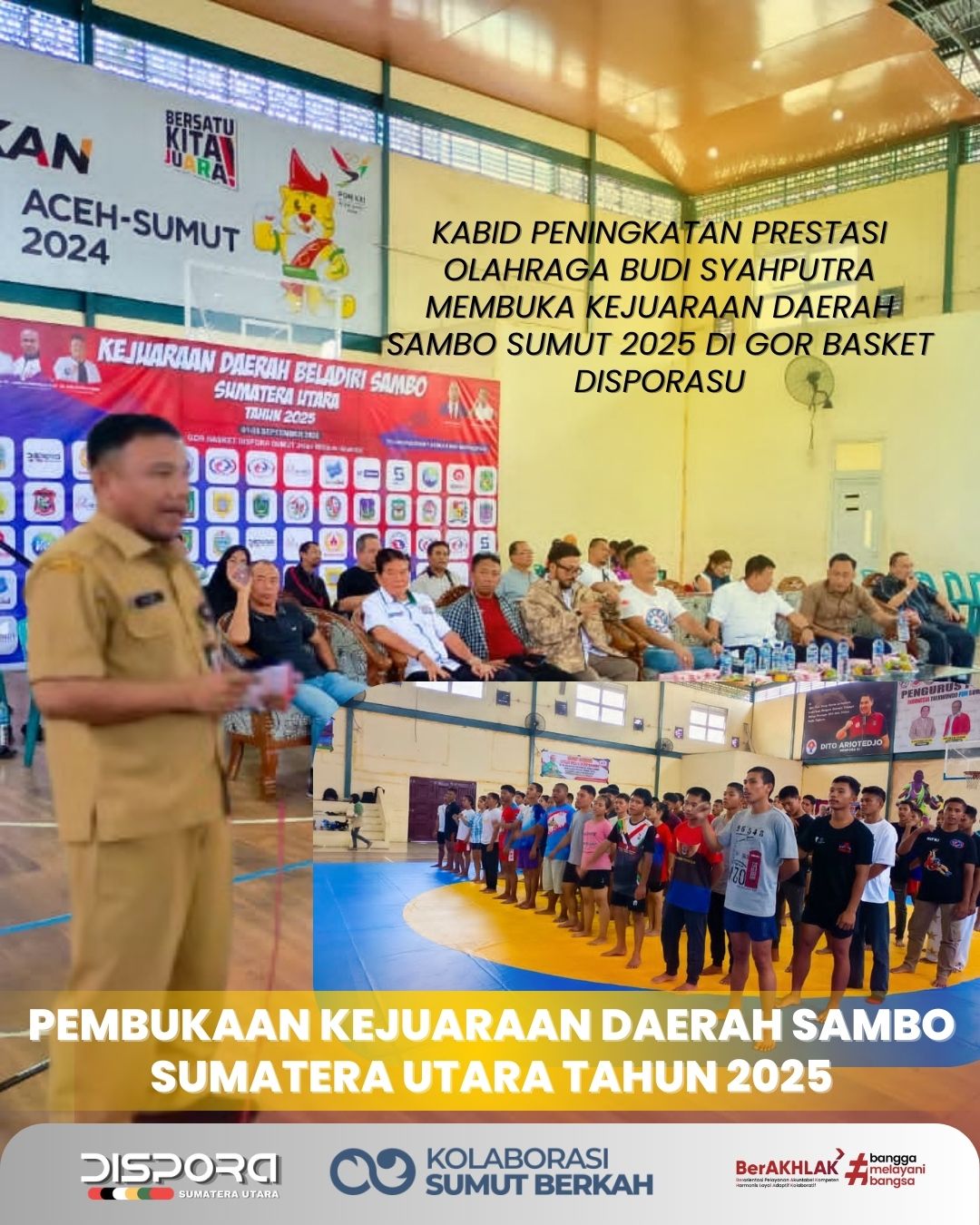 KABID PENINGKATAN PRESTASI OLAHRAGA BUDI SYAHPUTRA MEMBUKA KEJUARAAN DAERAH SAMBO SUMUT 2025 DI GOR BASKET DISPORASU