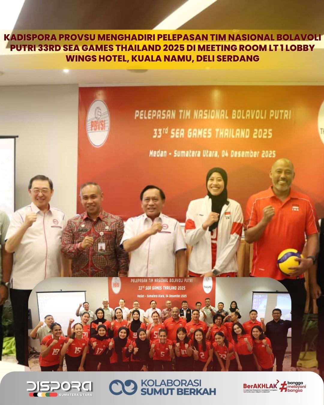 Kadispora Provsu menghadiri Pelepasan Tim Nasional Bolavoli Putri 33rd SEA GAMES THAILAND 2025 di Meeting Room Lt 1 Lobby Wings Hotel, Kuala Namu, Deli Serdang